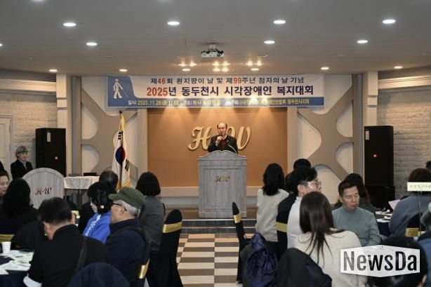 뉴스다 최광묵 기자 | (사)경기도시각장애인연합회 동두천시지회는 지난 28일 동두천농협 하나로웨딩홀에서 2025년 동두천시 시각장애인 복지대회를 성황리에 개최했다. 이번 행사는 제46회 흰지팡이의 날과 제99주년 점자의 날을 기념해 마련됐으며, 회원과 안내인, 관계자 등 200여 명이 참석해 자리를 빛냈다.