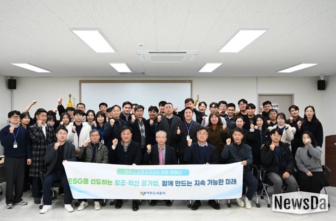 뉴스다 최광묵 기자 | 여주도시공사는 12월 1일 월례조회에서 ‘ESG를 선도하는 창조·혁신 공기업, 함께 만드는 지속가능한 미래’를 슬로건으로 전사적 ESG 경영 캠페인을 진행했다.