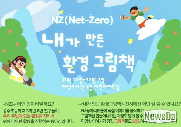 뉴스다 최광묵 기자 | 아산시립배방도서관은 7일까지 공수초등학교 환경동아리 ‘Net Zero’ 학생들이 제작한 그림책 전시회를 연다.
