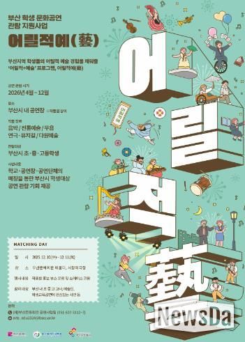 뉴스다 최광묵 기자 | 부산시와 부산시교육청, (재)부산문화회관이 추진하는 학생 문화공연 관람지원사업 '어릴적예(藝)' 2026년 선정 작품과 학교를 연결하는 오프라인 매칭데이가 오는 12월 10일, 11일 양일간 부산문화회관 배움터와 사랑채극장에서 열린다.