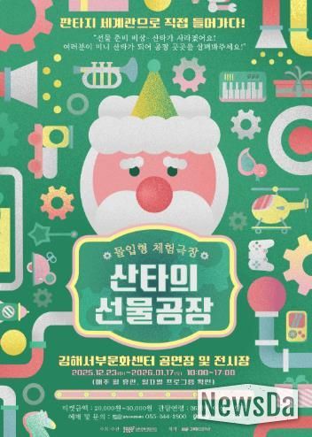 뉴스다 최광묵 기자 | (재)김해문화관광재단 김해서부문화센터는 다가오는 크리스마스 시즌을 맞아 공연장과 전시장 공간을 모두 활용한 몰입형 체험극장인 ‘산타의 선물공장’을 오는 12월 23일부터 2026년 1월 17일까지 운영한다.