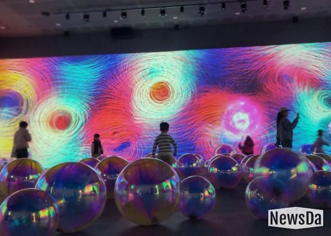 네 개의 포구는 전시를 통해 각각 고유의 빛과 감각으로 재탄생했다. 민물과 바다가 만나 만물이 조화를 이루던 전류리 포구는 찬란한 생명의 그래픽으로, 거센 물살과 파도 앞에서 자연의 겸손을 상기시키는 조강 포구는 깊고 푸른 빛으로 구현돼 눈길을 끌었다. 활발한 무역과 풍요의 시간을 품었던 강령 포구는 생동하는 디지털의 물결로, 침략과 전쟁의 아픔을 겪은 갑곶나루는 강렬한 붉은 색채의 추상 그래픽으로 재해석됐다.