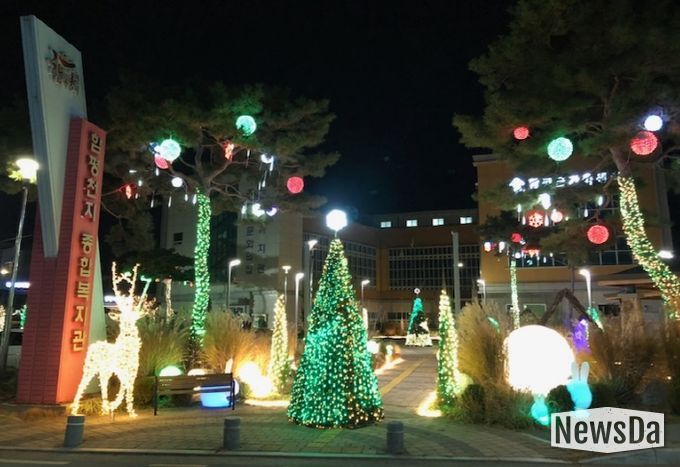 함평군은 5일 “노인복지관, 가족센터, 청소년센터 3개 기관이 함께 함평군천지종합복지관 앞 정원에 크리스마스트리, 달, 토끼 등 다양한 조형물과 야간경관을 설치했다”고 밝혔다.