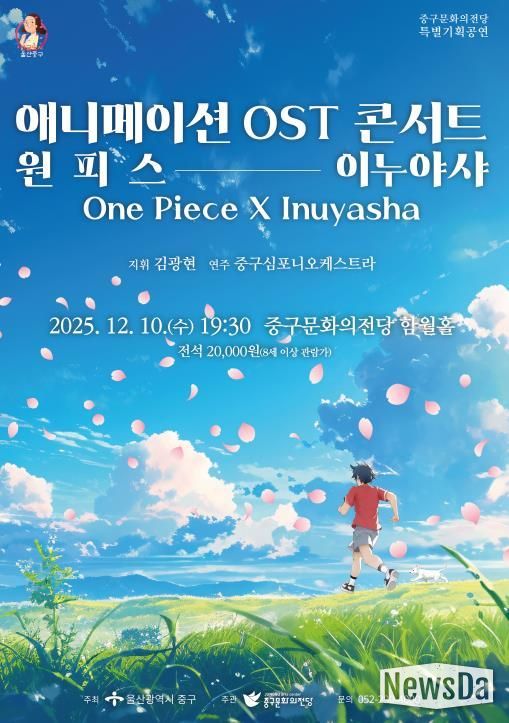 뉴스다 최광묵 기자 | 울산 중구문화의전당이 오는 12월 10일 오후 7시 30분 중구문화의전당 함월홀에서 '애니메이션 OST 콘서트-원피스X이누야샤' 기획공연을 개최한다.