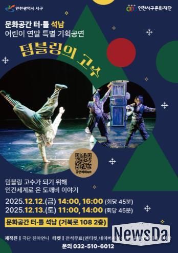 뉴스다 최광묵 기자 | 인천서구문화재단이 12월 12일부터 13일까지 양일간 문화공간 터·틀(석남)에서 어린이 연말 특별기획공연 '덤블링의 고수'를 개최한다.