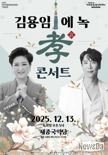 뉴스다 최광묵 기자 | 여주세종문화관광재단이 오는 12월 13일, 세종국악당에서 '김용임 & 에녹의 효 콘서트'를 선보인다.