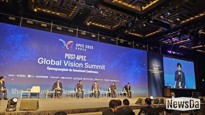 뉴스다 최광묵 기자 | 27일 개막한 'Post-APEC Global Vision Summit'에는 국내외 기업인과 외교 관계자를 포함한 700여 명이 참석했다. 회의는 AI, 바이오, 공급망, K-컬처를 주요 의제로 다루며, 포스트 APEC 시대 국제 협력의 중요성을 강조했다. 경북 22개 지자체장은 투자 확대와 글로벌 연계를 강화하겠다는 의지를 담은 '포스트 APEC 비전 선언'을 발표했다.