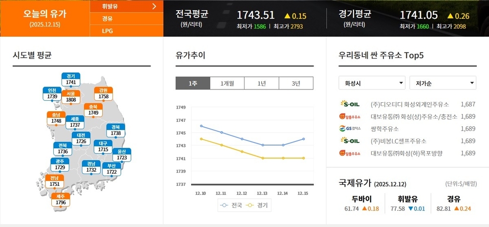 ▲화성시 경 유 제일 싼 주유소 1579원 자유에너지(주) 행운주유소