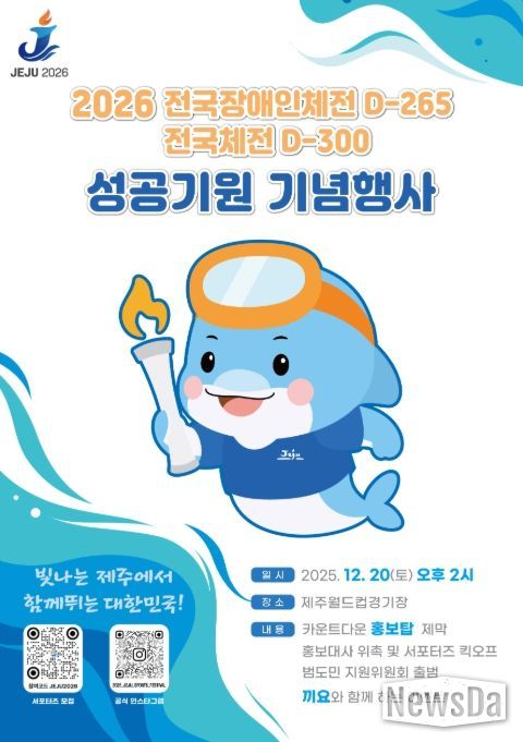 뉴스다 최광묵 기자 | 제주특별자치도는 20일 오후 2시 제주월드컵경기장에서 2026년 제주체전의 성공개최를 기원하는 전국·장애인 체전 D-day 기념행사를 개최한다고 밝혔다.