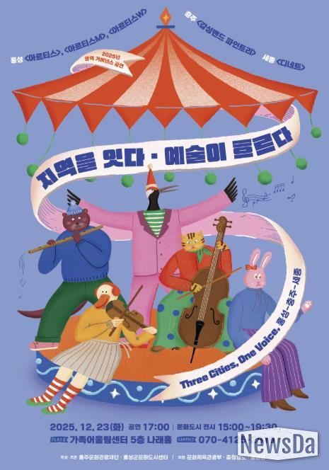 뉴스다 최광묵 기자 | 홍주문화관광재단 홍성군문화도시센터는 오는 23일, 가족어울림센터 5층 나래홀(충남 홍성군 홍북읍 홍학로 48 5층)에서 2025 광역거버넌스 교류 공연 '지역을 잇다·예술이 흐르다'와 함께 ‘문화도시 홍성 성과 전시’를 개최한다.