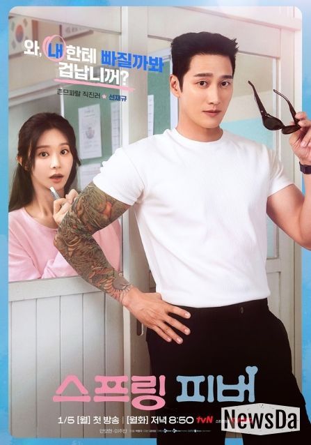 2026년 1월 5일(월) 첫 방송 예정인 tvN 새 월화드라마 ‘스프링 피버’(연출 박원국 /극본 김아정 /기획 CJ ENM STUDIOS /제작 본팩토리)는 찬바람 쌩쌩부는 교사 윤봄(이주빈 분)과 불타는 심장을 가진 남자 선재규(안보현 분)의 얼어붙은 마음도 녹일 봄날의 핫!핑크빛 로맨스다.