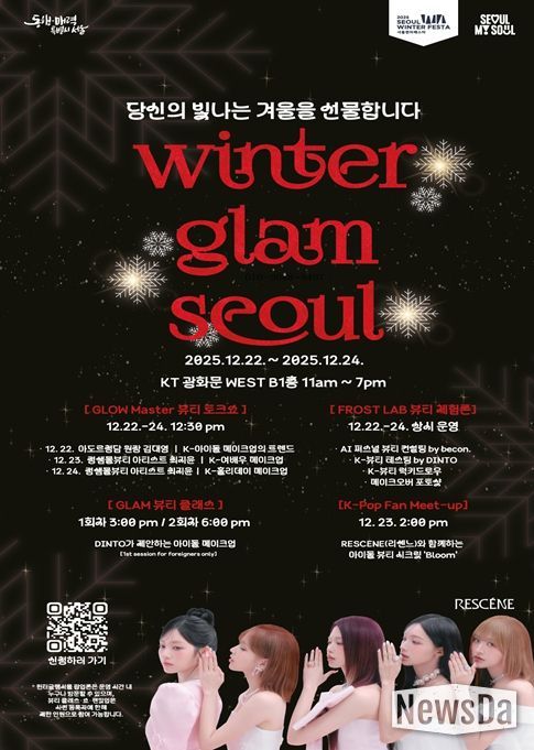 뉴스다 최광묵 기자 | 서울시가 서울윈터페스타를 찾은 국내외 관광객에게 차별화된 한류 경험을 제공하기 위해 K-뷰티를 주제로 한 ‘윈터 글램 서울(Winter Glam Seoul)’ 팝업 행사를 12월 22일부터 24일까지 3일간 개최한다.