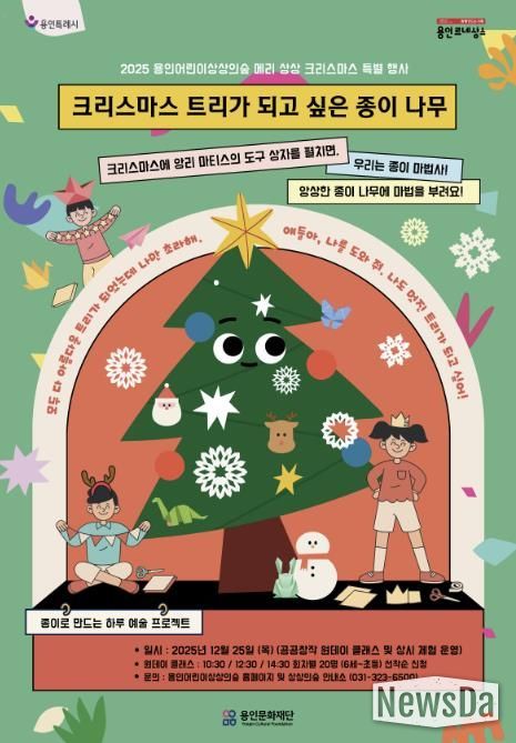 용인어린이상상의숲에서는 공공 창작 프로젝트 〈크리스마스트리가 되고 싶은 종이나무〉가 진행된다. 어린이들이 종이를 접고, 오리고, 붙이는 창작 활동을 통해 종이 나무를 함께 꾸며 하나의 크리스마스트리를 완성하는 참여형 프로그램으로, 아이들의 주체적인 참여를 통해 상상력과 표현력을 키우고 또래 친구들과 협력해 하나의 작품을 완성시키는 공동 창작의 즐거움도 경험할 수 있다.