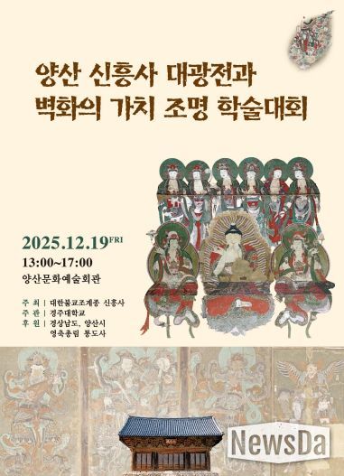 뉴스다 최광묵 기자 | 양산시는 19일 오후 1시 양산문화예술회관에서 '양산 신흥사 대광전과 벽화의 가치 조명 학술대회'를 개최한다.