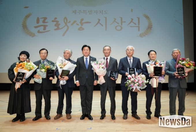 올해 문화상은 ▲예술 부문 김현숙(한국미술협회 제주도지회 회원) ▲교육 부문 김계담(전 서귀포문화학교 교장) ▲언론·출판 부문 고홍철(제주언론인클럽 회장) ▲체육 부문 오선홍(제주특별자치도체육회 부회장) ▲1차산업 부문 고봉주(제주시농업협동조합장) ▲국내 재외도민 부문 허능필(재외제주특별자치도민회총연합회·서울제주특별자치도민회 명예회장) ▲국외 재외도민 부문 이한진(전 재미뉴욕제주도민회 회장) 등 7명이 수상의 영예를 안았다.