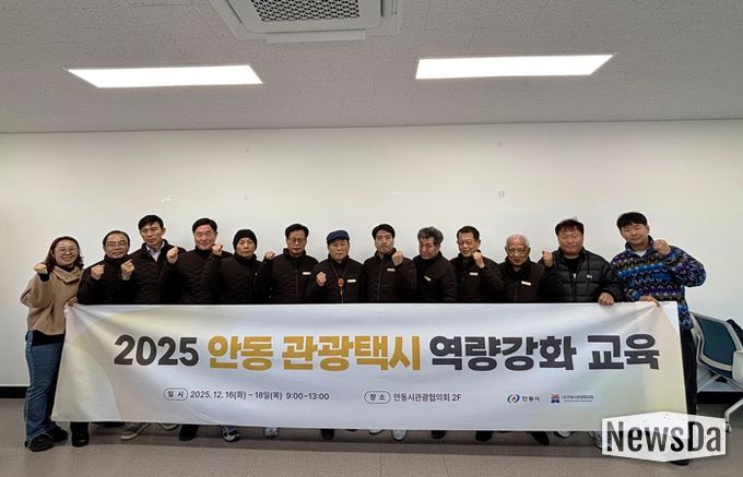 뉴스다 최광묵 기자 | (사)안동시관광협의회는 지난 18일 안동관광커뮤니티센터에서 ‘2025 안동관광택시 종사자 역량강화 교육’ 수료식을 성황리에 마쳤다고 밝혔다.