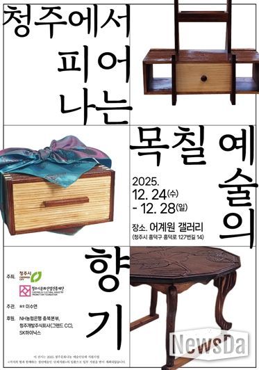 뉴스다 최광묵 기자 | 청주시문화산업진흥재단은 오는 24일 운천동에 위치한 어계원 갤러리에서 청년 작가 이수연의 개인전 ‘청주에서 피어나는 목칠 예술의 향기’가 개막한다고 밝혔다.