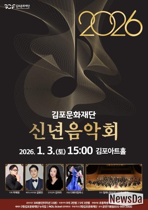 뉴스다 최광묵 기자 | (재)김포문화재단이 새해 첫 무대로 내년 1월 3일 김포아트홀에서 '2026년 김포문화재단 신년 음악회'를 개최한다고 밝혔다.