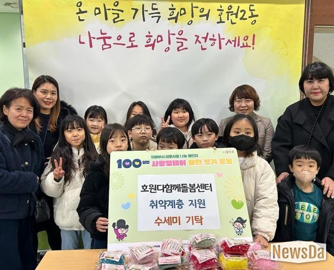 뉴스다 최광묵 기자 | 의정부시 호원2동주민센터는 12월 18일 호원 다함께돌봄센터가 직접 제작한 수세미 100개를 기탁하며 ‘100일간 사랑릴레이 배턴 잇기’에 동참했다고 밝혔다.