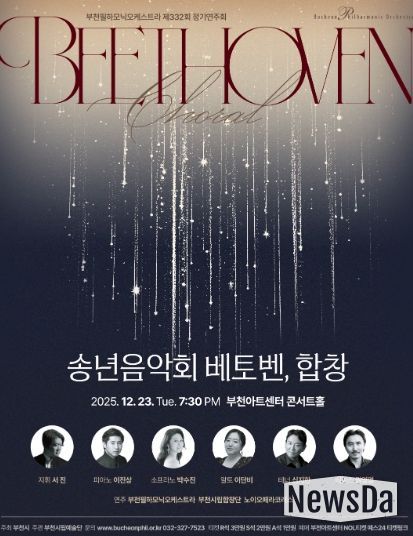 뉴스다 최광묵 기자 | 부천필하모닉오케스트라가 오는 12월 23일 오후 7시 30분 부천아트센터 콘서트홀에서 제332회 정기연주회 송년음악회 ‘베토벤, 합창’을 개최한다. 이번 송년음악회는 부천필이 2015년부터 매년 선보여온 프로그램인 베토벤 '교향곡 제9번 ‘합창’'과 함께, 모차르트 '피아노 협주곡 제12번'이 연주된다. 공연에는 지휘자 서진과 부천필이 무대에 오르며, 소프라노 박수진, 메조소프라노 이단비, 테너 신지한, 베이스 권영명이 협연하며 부천시립합창단과 노이오페라코러스가 연주로 함께 무대를 꾸민다.