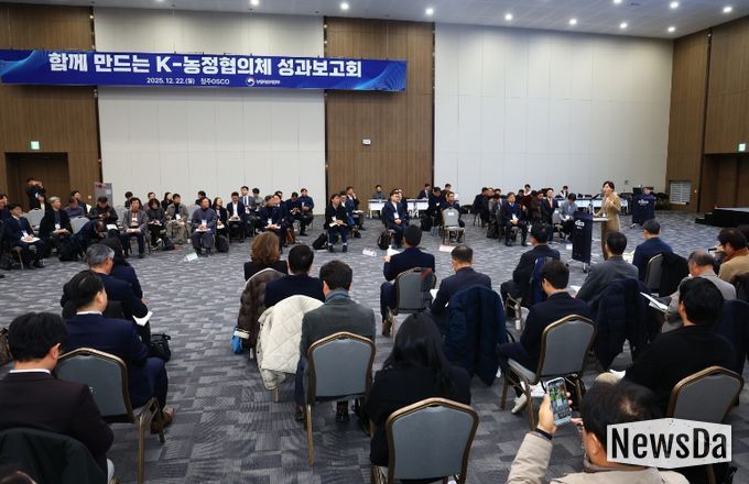 뉴스다 최광묵 기자 | 농림축산식품부는 12월 22일 오후 청주오스코(OSCO)에서 '함께 만드는 K-농정협의체' 성과보고회를 개최했다. 이번 행사에는 K-농정협의체 공동대표인 송미령 농식품부 장관과 류진호 한국4-H청년농업인연합회 회장을 비롯한 협의체 위원 120여 명과 농어업농어촌특별위원회 김호 위원장을 포함한 관계자 30여 명 등 총 150여 명이 참석했다.