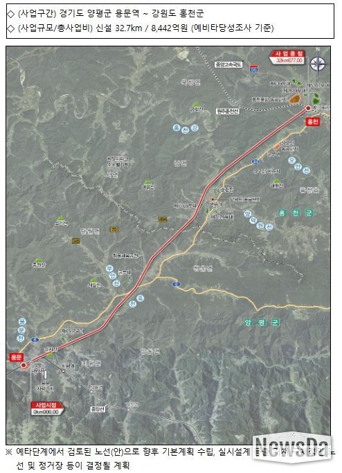 뉴스다 최광묵 기자 | 국토교통부는 12월 22일 열린 재정사업평가위원회(기획재정부 주관)에서 용문~홍천 광역철도 건설사업이 예타를 통과하고, 증평-호법 등 2개 고속도로 확장사업이 예타 대상 사업에 선정됐다고 밝혔다.