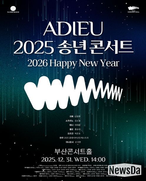 뉴스다 최광묵 기자 | 클래식부산은 2025년 부산콘서트홀의 성공적인 개관과 완성도 높은 첫해를 함께한 시민들에게 감사의 마음을 전하기 위해 오는 12월 31일 오후 2시 부산콘서트홀에서 '아듀(ADIEU) 2025 송년 콘서트'를 개최한다고 밝혔다.