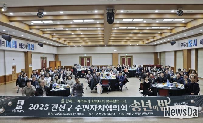 뉴스다 최광묵 기자 | 권선구 주민자치협의회는 2025년 12월 22일 오후 6시, 권선구청 대회의실에서 '2025 권선구 주민자치협의회 송년회'를 개최했다.