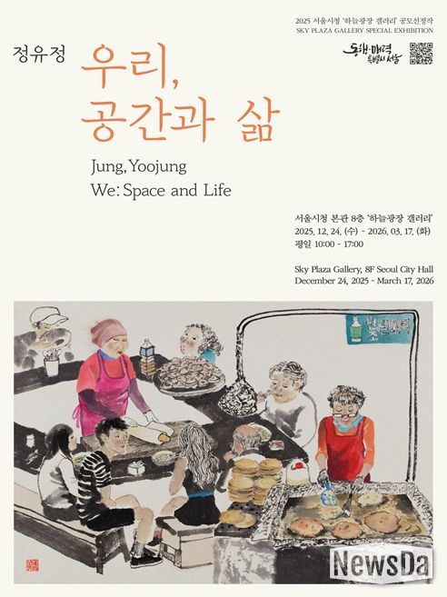 뉴스다 최광묵 기자 | 일상 속에서 만나는 따뜻한 웃음의 순간들이 한지 위에 펼쳐진다. 12월 24일부터 2026년 3월 17일까지 서울시청 본관 8층 ‘하늘광장 갤러리(Sky Plaza Gallery)’에서 정유정 작가의 ‘우리, 공간과 삶’ 전시가 열린다.