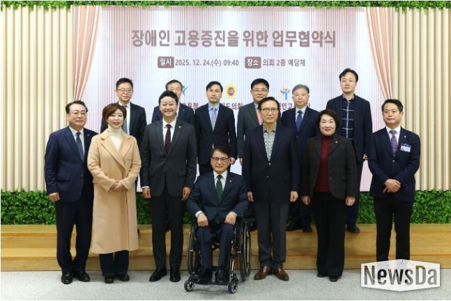 뉴스다 최광묵 기자 | 경기도의회 정경자 의원(국민의힘)의 제안으로 24일 경기도의회 예담채(2층)에서 경기도의회, 경기도교육청, 한국장애인고용공단이 장애인 고용증진을 위한 업무협약(MOU)을 체결했다.