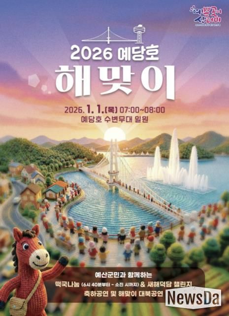 행사 관계자는 “예당호의 힘찬 대북 소리와 함께 희망을 노래하며 새해를 맞이하길 바란다”며 “단순한 관람을 넘어 군민과 관광객이 함께 덕담을 나누고 즐길 수 있는 해맞이 축제가 되도록 준비했다”고 말했다.