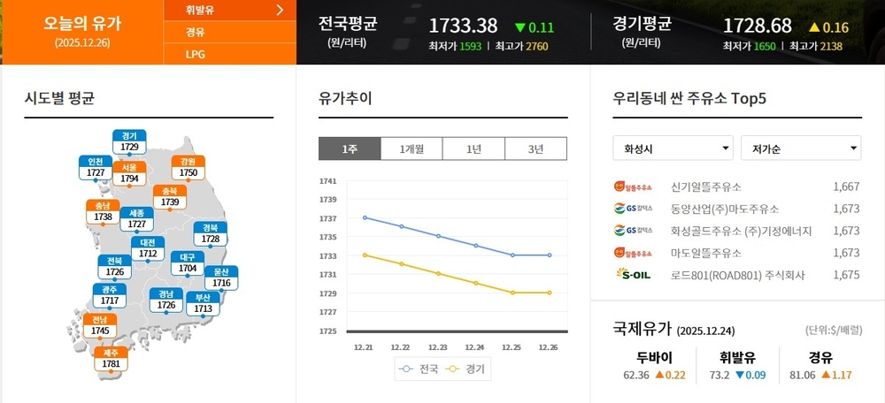 ▲화성시 휘발류 제일 싼 주유소 1667원 신기알뜰주유소