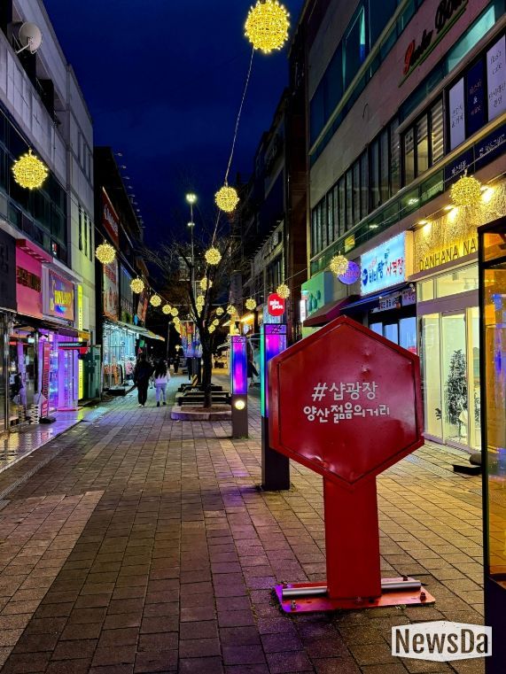 뉴스다 최광묵 기자 | 양산시는 지난 23일 경상남도 제1호 소상공인 특화거리인 양산젊음의거리 경관조명 설치사업이 마무리됐다고 밝혔다.