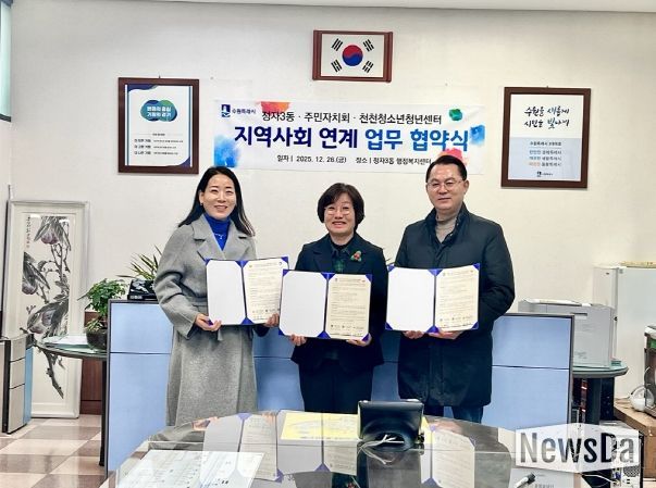 뉴스다 최광묵 기자 | 수원시청소년청년재단(이사장 최종진) 천천청소년청년센터는 수원시 정자3동 행정복지센터, 주민자치회와 지역사회 연계 활성화를 위한 업무협약을 12월 26일 체결했다고 밝혔다.