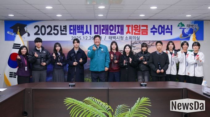 뉴스다 류대현 기자 | 태백시 지난 26일 시청 소회의실에서 2025년 태백시 미래인재 신규 선발자와 그 가족 등이 참석한 가운데 미래인재 지원금 및 인증패 수여식을 개최했다.