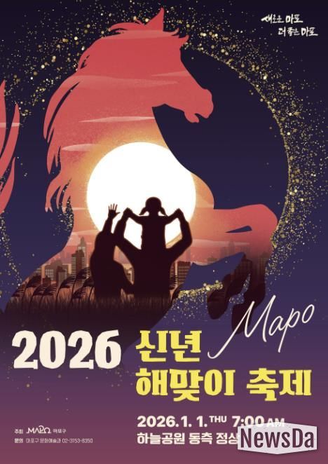 뉴스다 최광묵 기자 | 마포구는 붉은 말의 해 병오년(丙午年)을 맞아 2026년 1월 1일 하늘공원 정상에서 ‘2026 신년 해맞이 축제’를 개최한다.