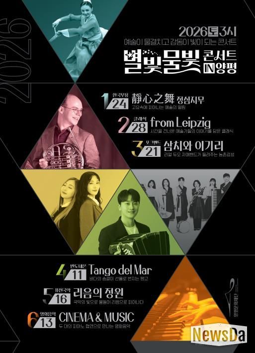 뉴스다 최광묵 기자 | 양평문화재단은 군민들에게 깊은 감동과 예술적 즐거움을 선사할 생활문화센터 정기공연 ‘2026 별빛물빛 콘서트 in 양평’의 상반기 라인업을 확정했다. 이에 따라 내년도 첫 공연을 1월 24일에 올린다.