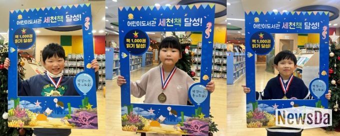 이번 완독의 영예를 안은 어린이는 104호 이재상, 105호 송지아, 106호 나유찬 어린이로, 도서관은 이들의 성취를 축하하기 위해 인증서와 메달을 수여하는 기념식을 진행했다.