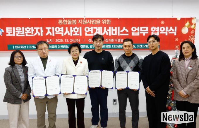 뉴스다 최광묵 기자 | 이천시는 12월 24일 시청 다올실에서 퇴원환자의 안정적인 지역사회 복귀와 지속적인 돌봄지원을 위한 ‘퇴원환자 지역사회 연계 서비스 업무협약’을 체결했다.