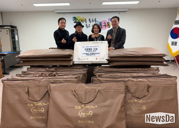 뉴스다 최광묵 기자 | 구리시 동구동 행정복지센터는 지난 26일 동구동 행정복지센터에서 구리경찰서 경찰발전협의회와 한일의료기로부터 관내 다문화가족과 취약계층을 위한 온열매트 30개(약 600만 원 상당)를 전달받았다고 밝혔다.