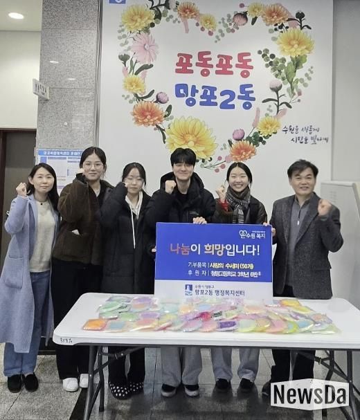 이용태 망포2동장은 “따뜻한 나눔을 실천해 준 청명고 3학년 6반 학생들과 선생님께 깊이 감사드린다”며 “학생들의 정성이 담긴 물품이 어려운 이웃들에게 잘 전달될 수 있도록 하겠다”고 전했다.