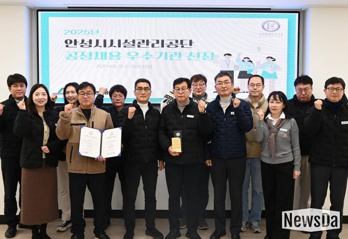 뉴스다 최광묵 기자 | 안성시시설관리공단은 한국경영인증원으로부터 ‘공정채용우수기관’ 인증을 획득하며, 7년 연속 재인증에 성공했다고 밝혔다. 이번 인증은 채용 과정 전반에서 편견적 요소를 배제하고 직무능력 중심의 공정한 채용체계를 안정적으로 운영해 온 성과를 대외적으로 인정받은 결과다.