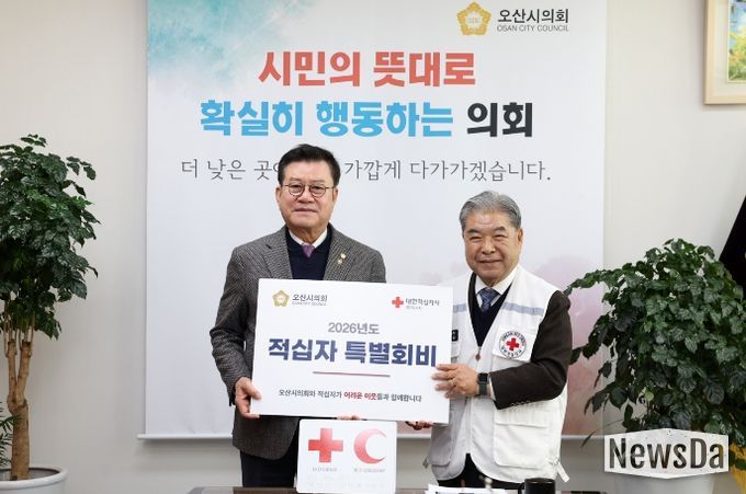 이 회장은 또 “오산은 나눔이 일회성에 그치지 않고 생활 속 실천으로 이어지는 도시”라며 “적십자 활동에 보내주신 오산시의회와 오산시민들의 마음에 깊이 감사드리며 적십자도 그 신뢰에 보답할 수 있도록 도움이 필요한 이웃에게 실제로 힘이 되는 활동을 이어가겠다”고 말했다.
