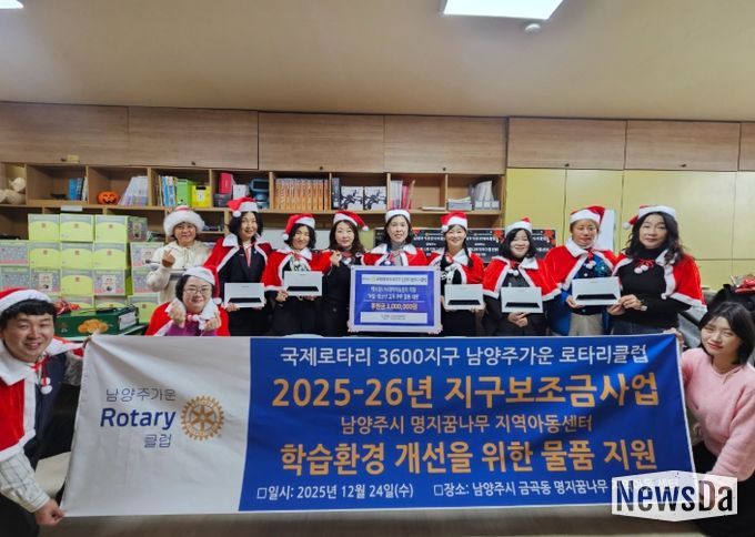 뉴스다 최광묵 기자 | 남양주시는 지난 12월 24일 국제로타리3600지구 남양주가운로타리클럽이 남양주시 사회복지관 남부희망케어센터를 통해 후원금 300만 원을 기탁하고, 이를 활용해 마련한 교육 물품을 명지꿈나무지역아동센터에 전달했다고 밝혔다.