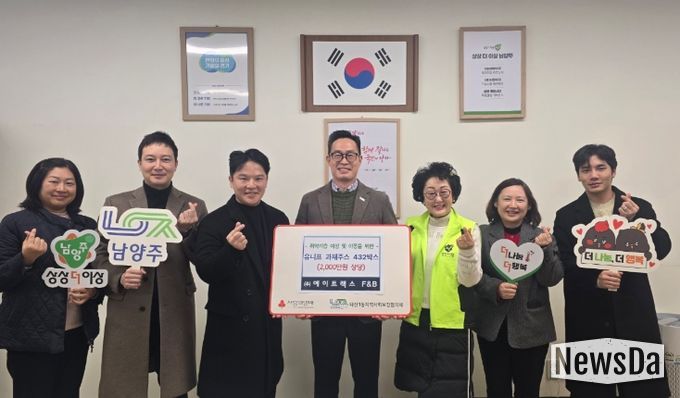 뉴스다 최광묵 기자 | 남양주시는 30일 다산행정복지센터에서 ㈜에이트랙스 에프앤비가 지역 아동을 위한 과채주스 432박스를 전달했다고 밝혔다.