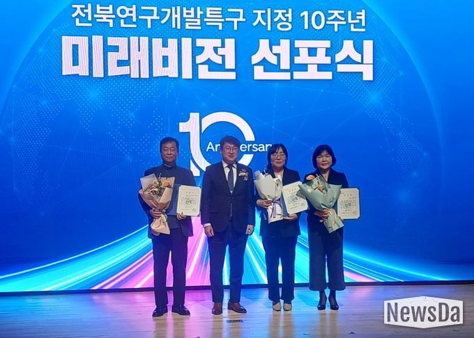 뉴스다 최광묵 기자 | 전북특별자치도는 과학기술정보통신부, 전북연구개발특구본부와 함께 30일 전북테크비즈센터에서 전북연구개발특구 지정 10주년 기념식을 열고, 지난 10년간의 성과를 돌아보고 미래 10년을 향한 새로운 비전을 공식 선포했다.