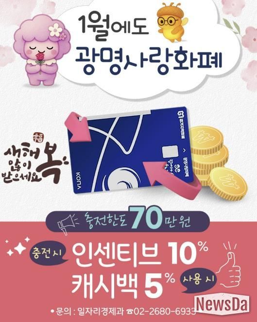 뉴스다 최광묵 기자 | 광명시가 활력을 상징하는 ‘붉은 말의 해’ 병오년(丙午年)을 맞아, 지역경제에 힘찬 기운을 불어넣기 위해 광명사랑화폐 혜택을 이어간다.