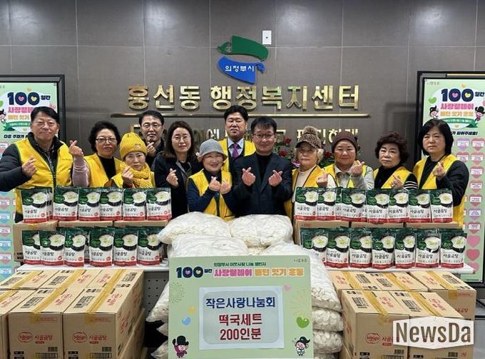 뉴스다 최광묵 기자 | 의정부시 흥선동행정복지센터는 12월 29일 작은사랑나눔회가 ‘100일간 사랑릴레이 배턴 잇기’에 동참해 떡국세트 200인분을 기탁했다고 밝혔다.