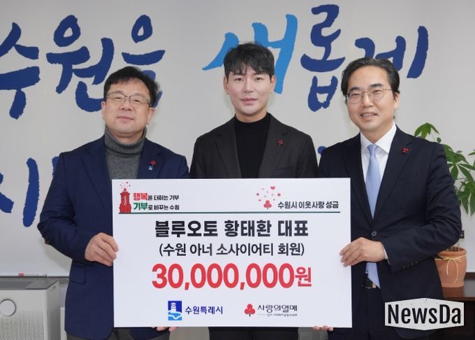 뉴스다 최광묵 기자 | 황태환 블루오토 대표가 12월 31일 “취약계층 아동 지원에 사용해달라”며 3000만 원을 수원시에 기부했다.