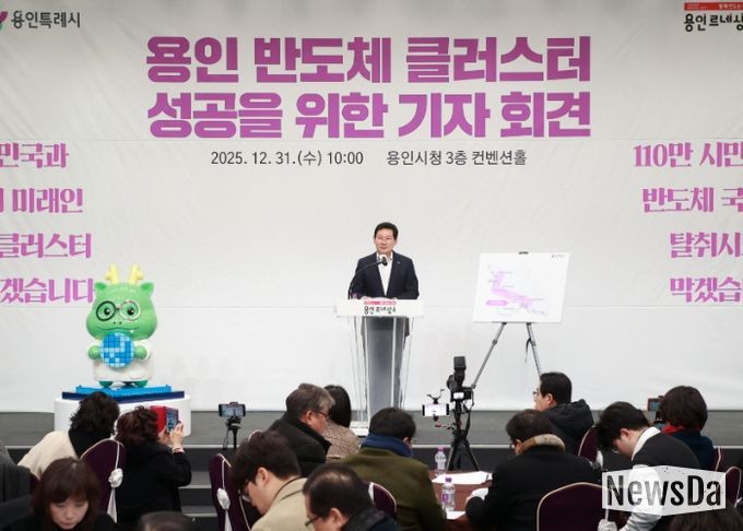 뉴스다 최광묵 기자 | 이상일 용인특례시장은 31일 시청 컨벤션홀에서 열린 긴급 기자회견에서 반도체 메가 클러스터 조성을 방해하려는 일부 지역, 일부 여권의 정치인과 일부 행정부 인사의 움직임과 관련해 대통령이나 국무총리가 정부 차원의 공식적인 입장 발표를 통해 논란과 혼란을 종식시켜 줄 것을 요구했다.